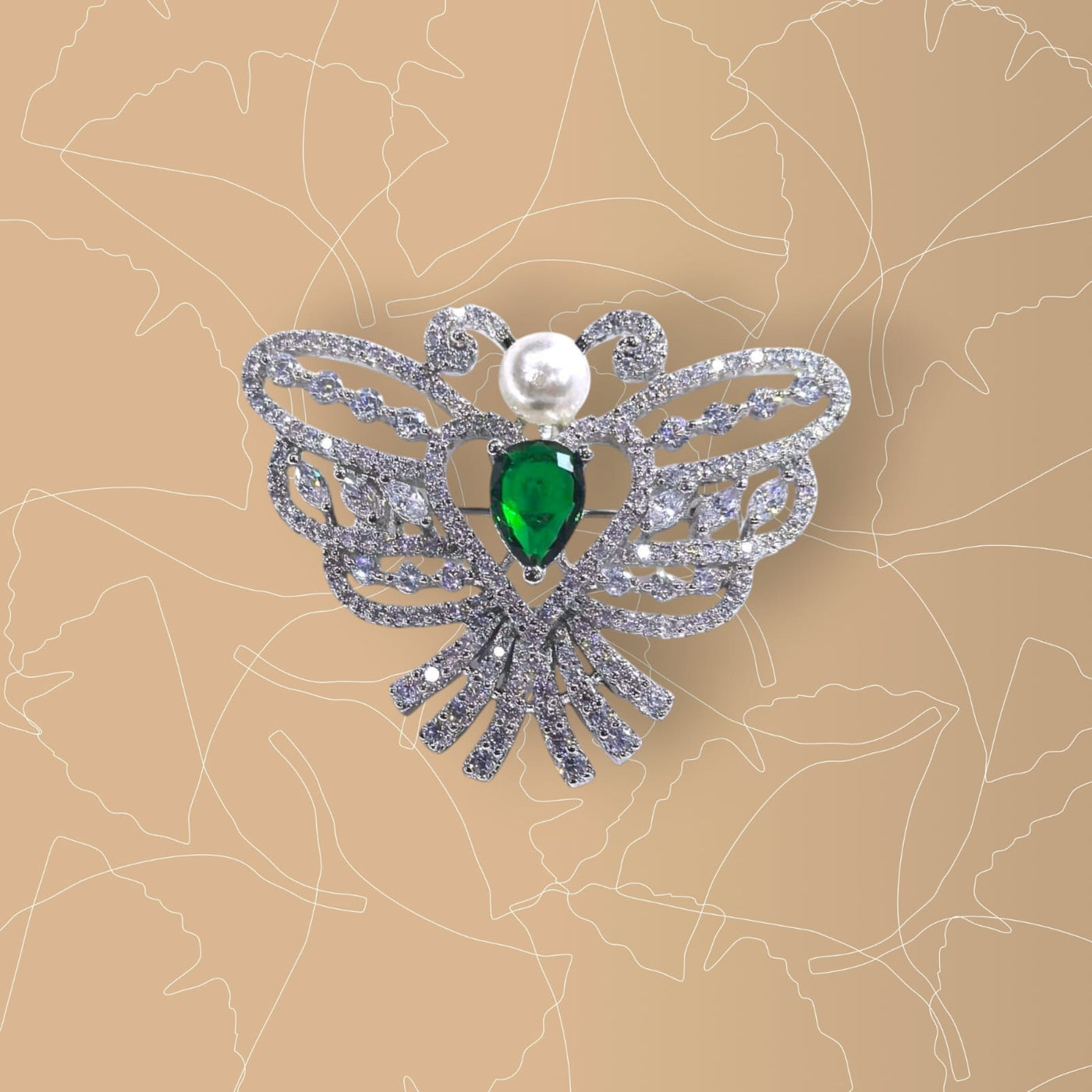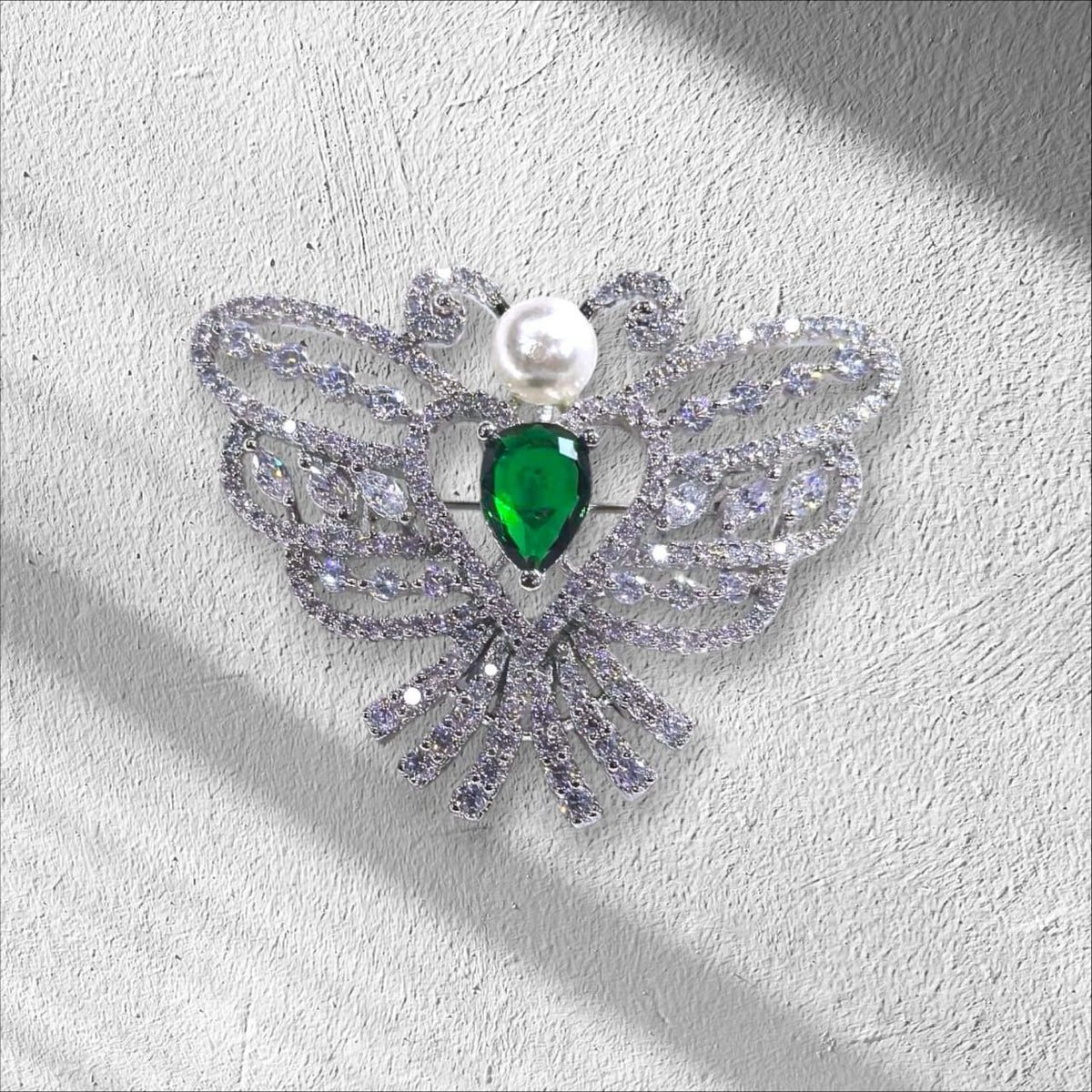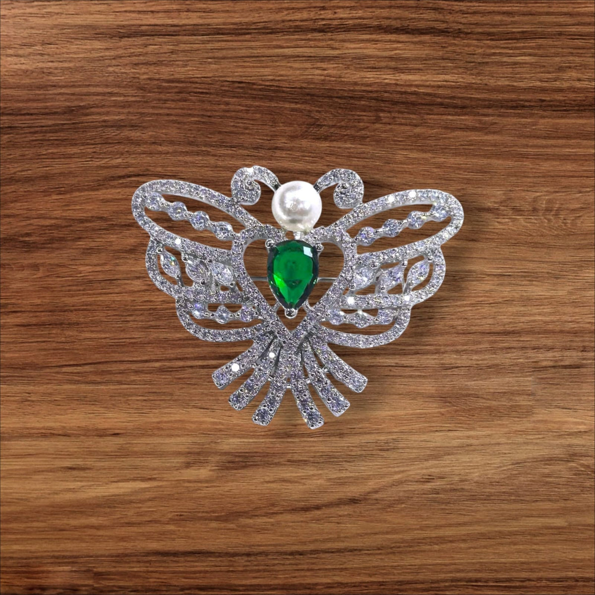 925 Sterling Silver Emerald-Green Jewel Bee/Moth Brooch