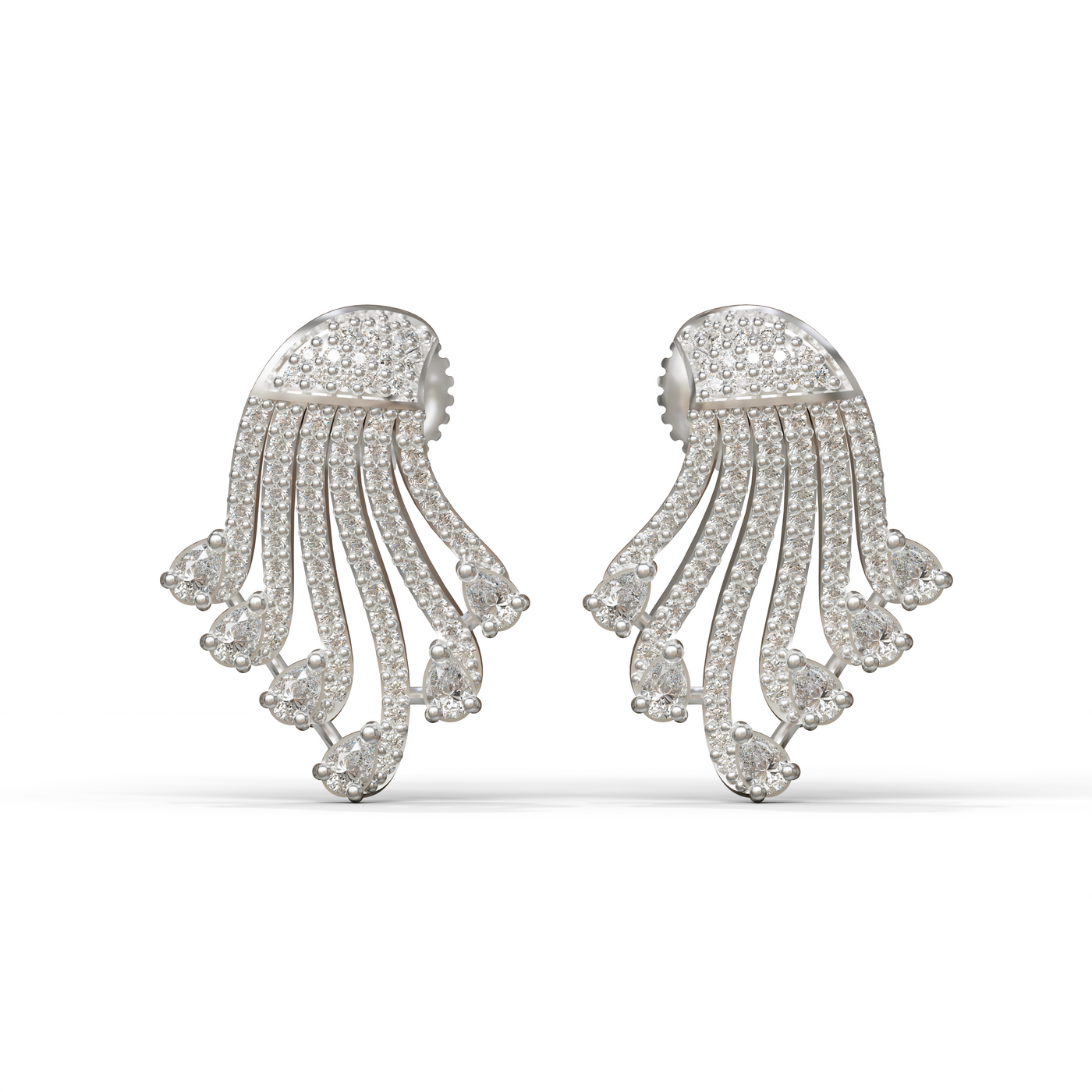 925 silver Bridal Fan Cluster Studs with Teardrop Dangles
