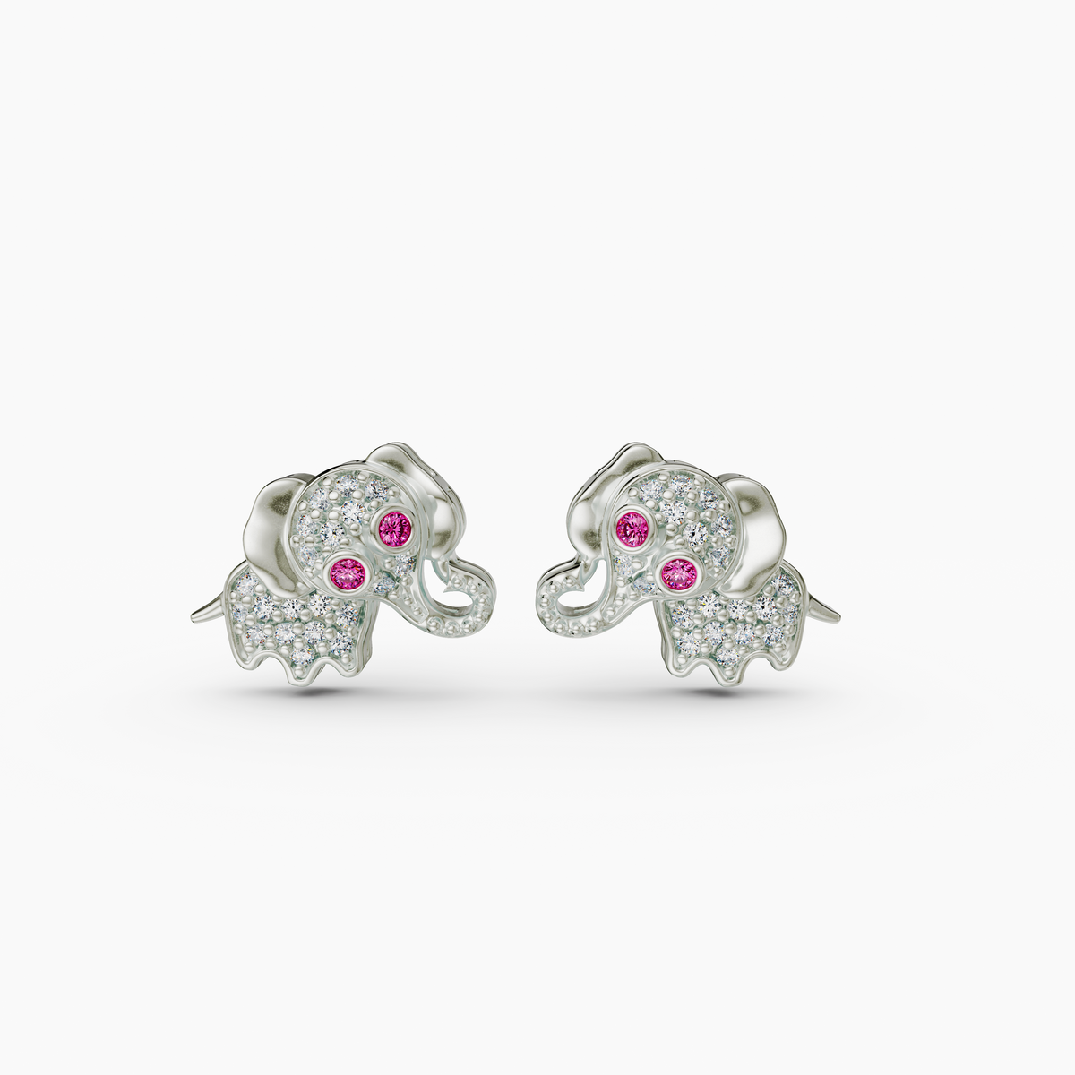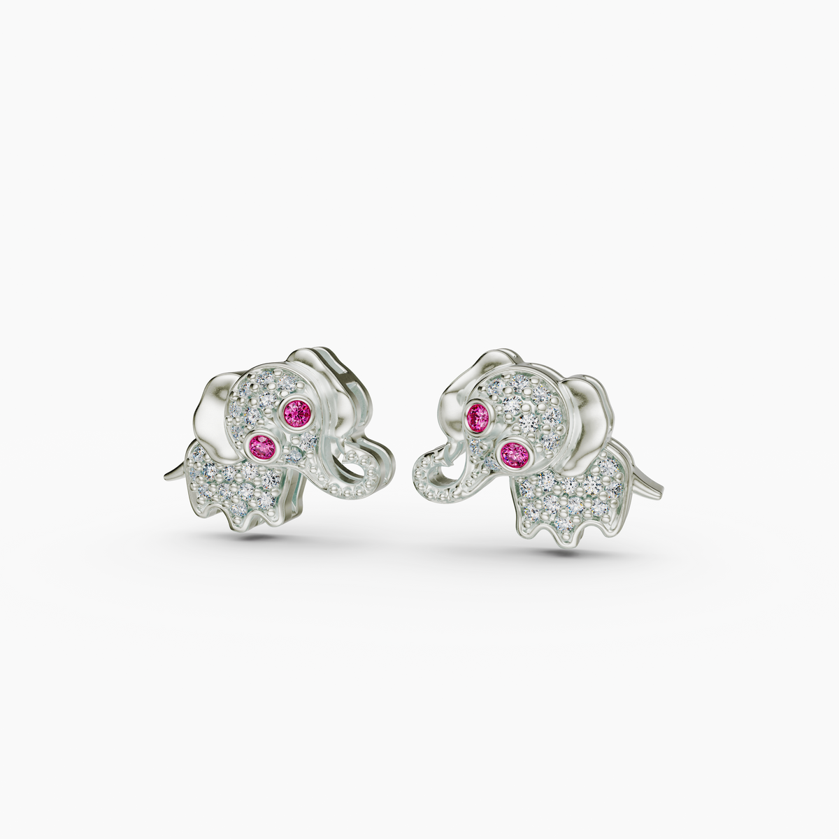 Celebrate innocence and good luck with this charming Baby Elephant earring pair. Crafted from polished 925 Sterling Silver, this pair features an adorable elephant design, fully paved with sparkling Cubic Zirconia (CZ) stones for brilliant shimmer. The elephant’s eyes are accented with two vibrant Pink Cubic Zirconia that bring the lovable creature to life.
