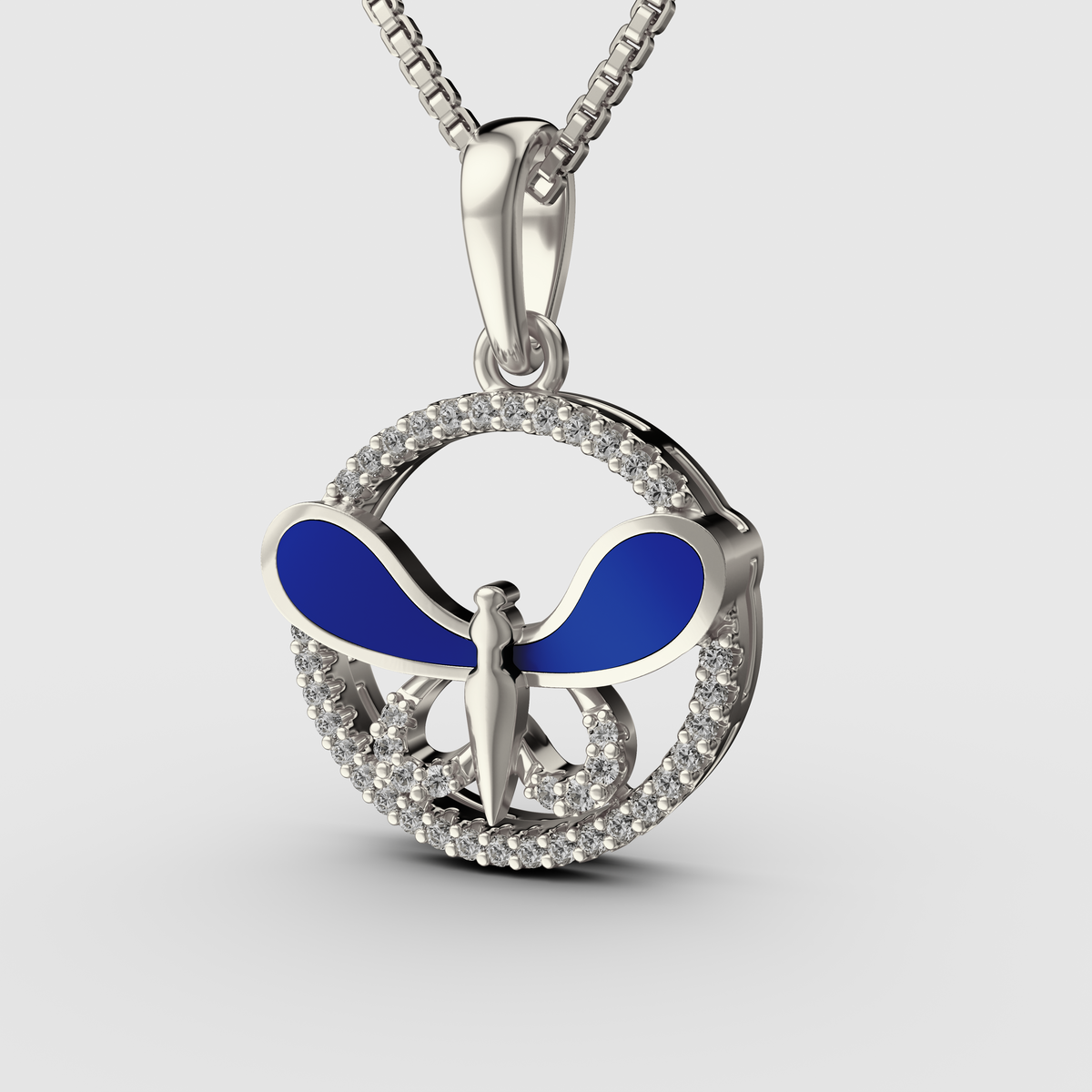 925 Silver Butterfly round shaped minakari design Pendant with Chain perfect for kids college girls women