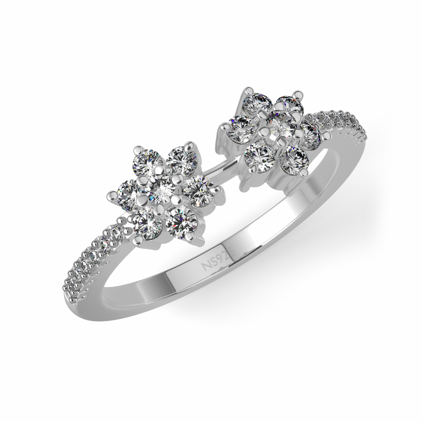 Duo Floral Cluster Stacking 925 sterling silver Ring