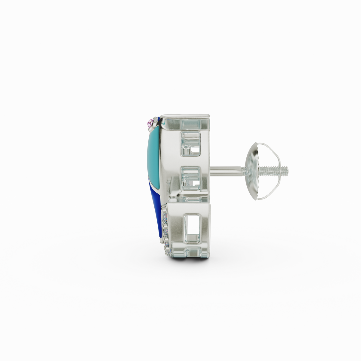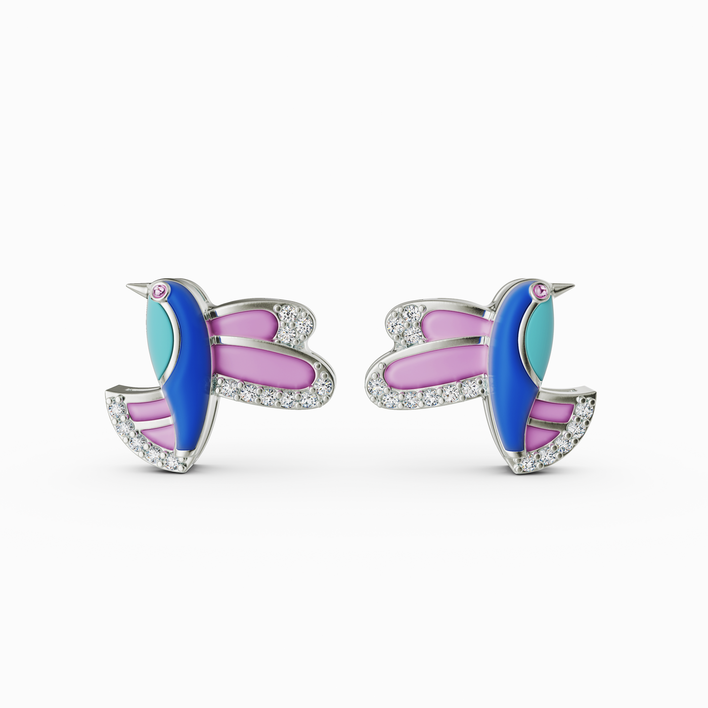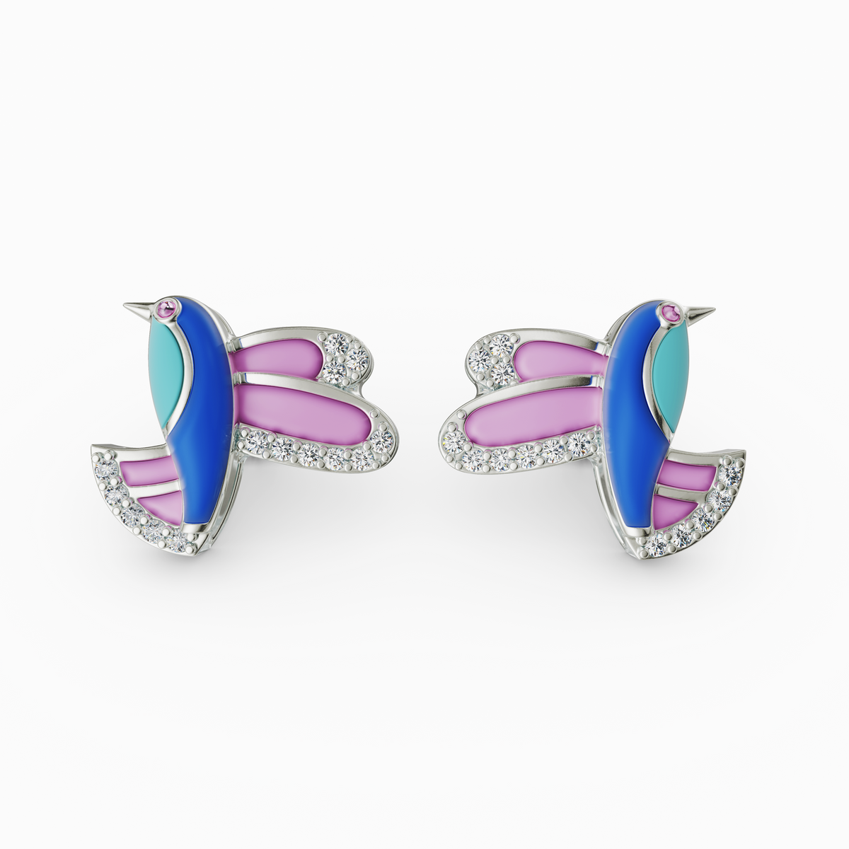 925 Sterling Silver CZ Hummingbird earring - Pink & Blue Enamel