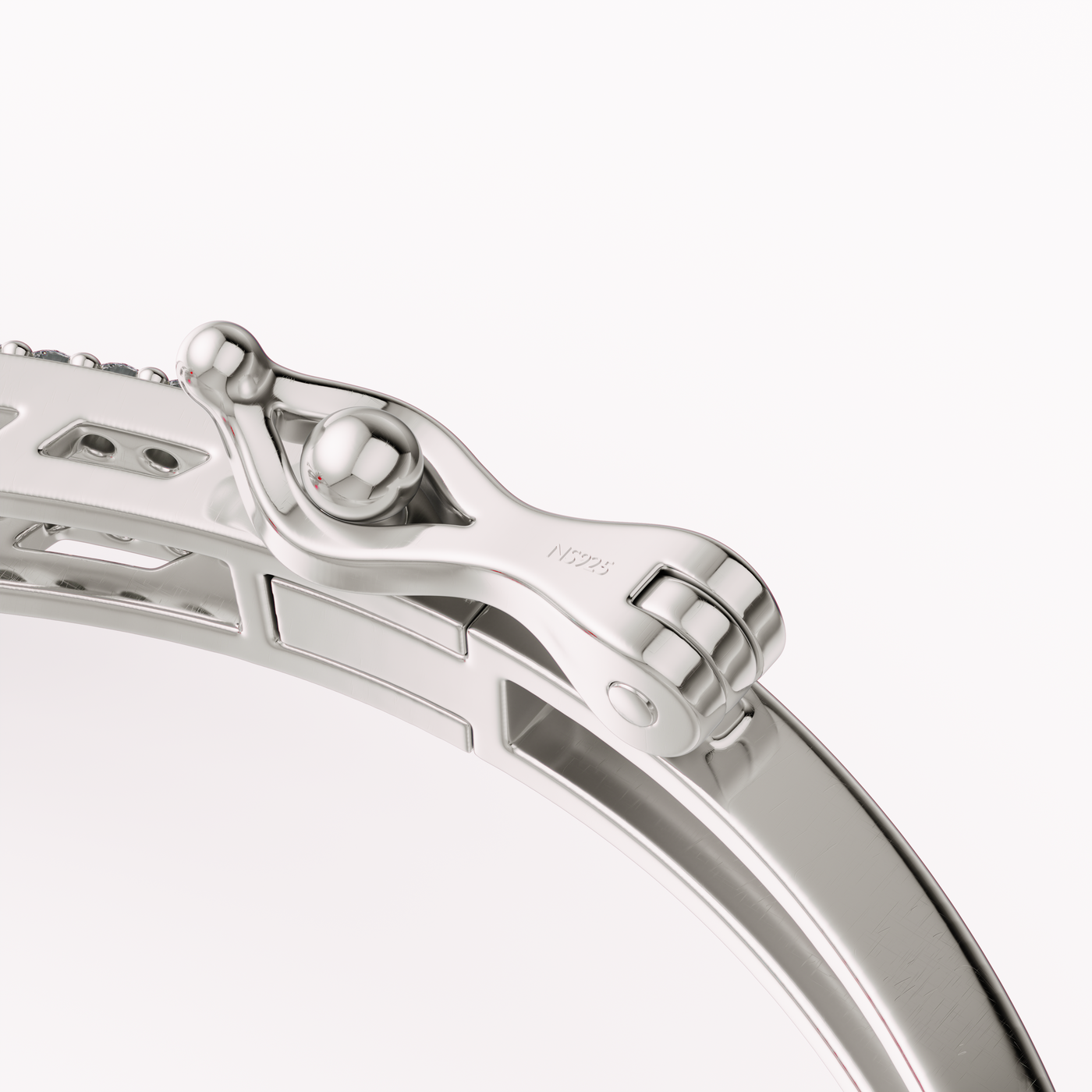 This statement bangle is the perfect choice for evening galas, special anniversaries, or for those who desire a piece of jewelry that is both a work of art and a luxury accessory.