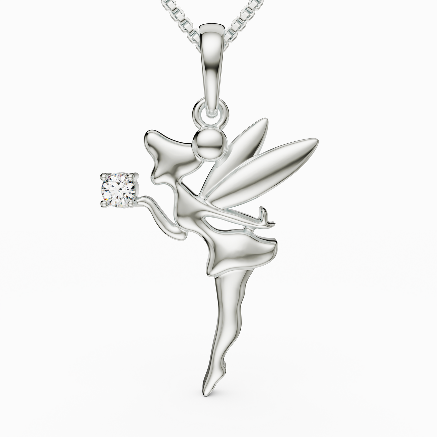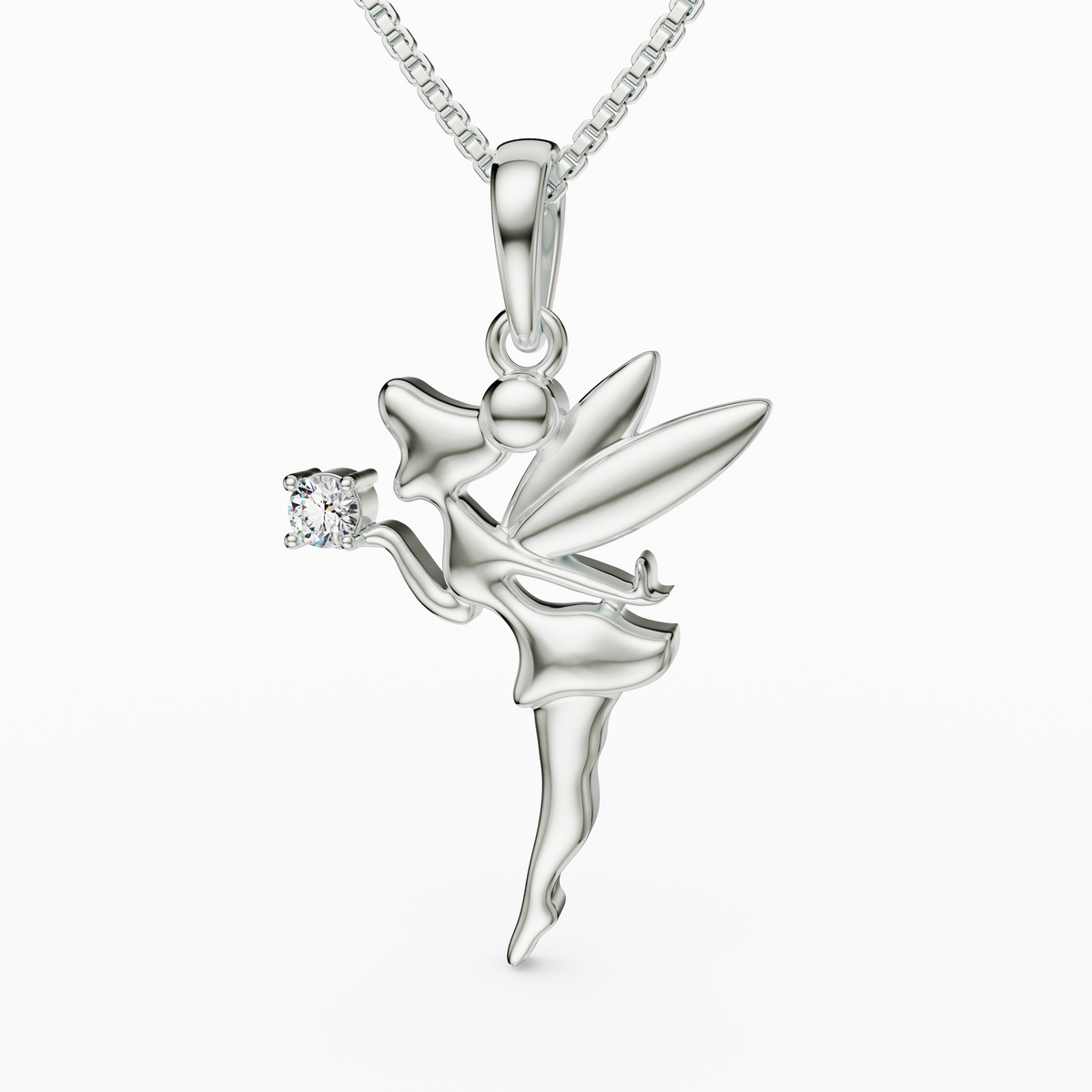 Graceful Silhouette: The pendant showcases a stylized fairy with smooth, polished wings and a dynamic flying posture that suggests effortless movement.