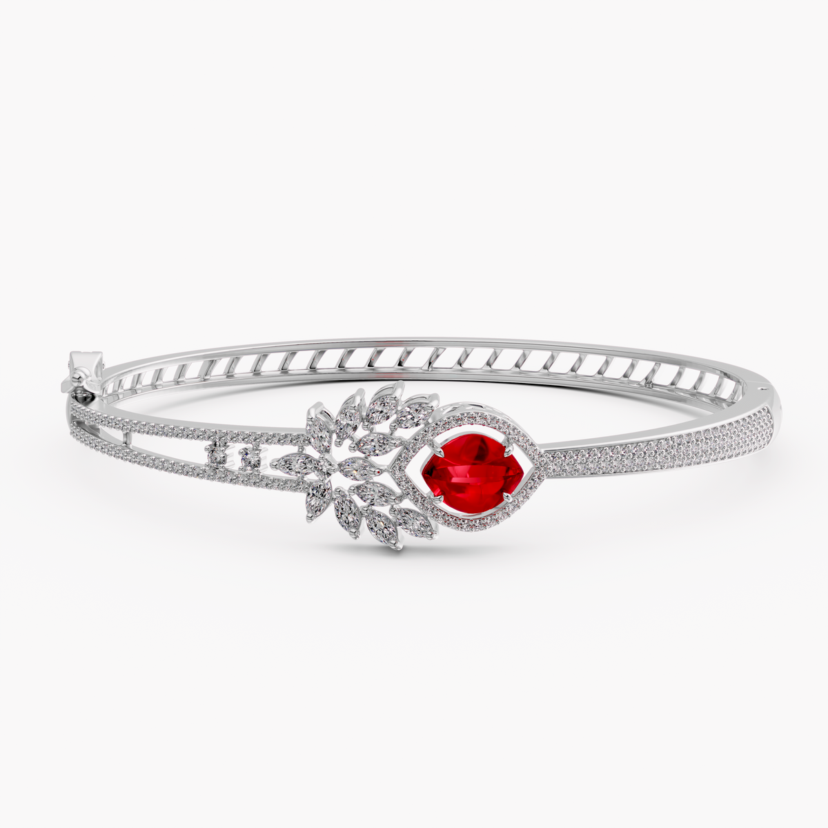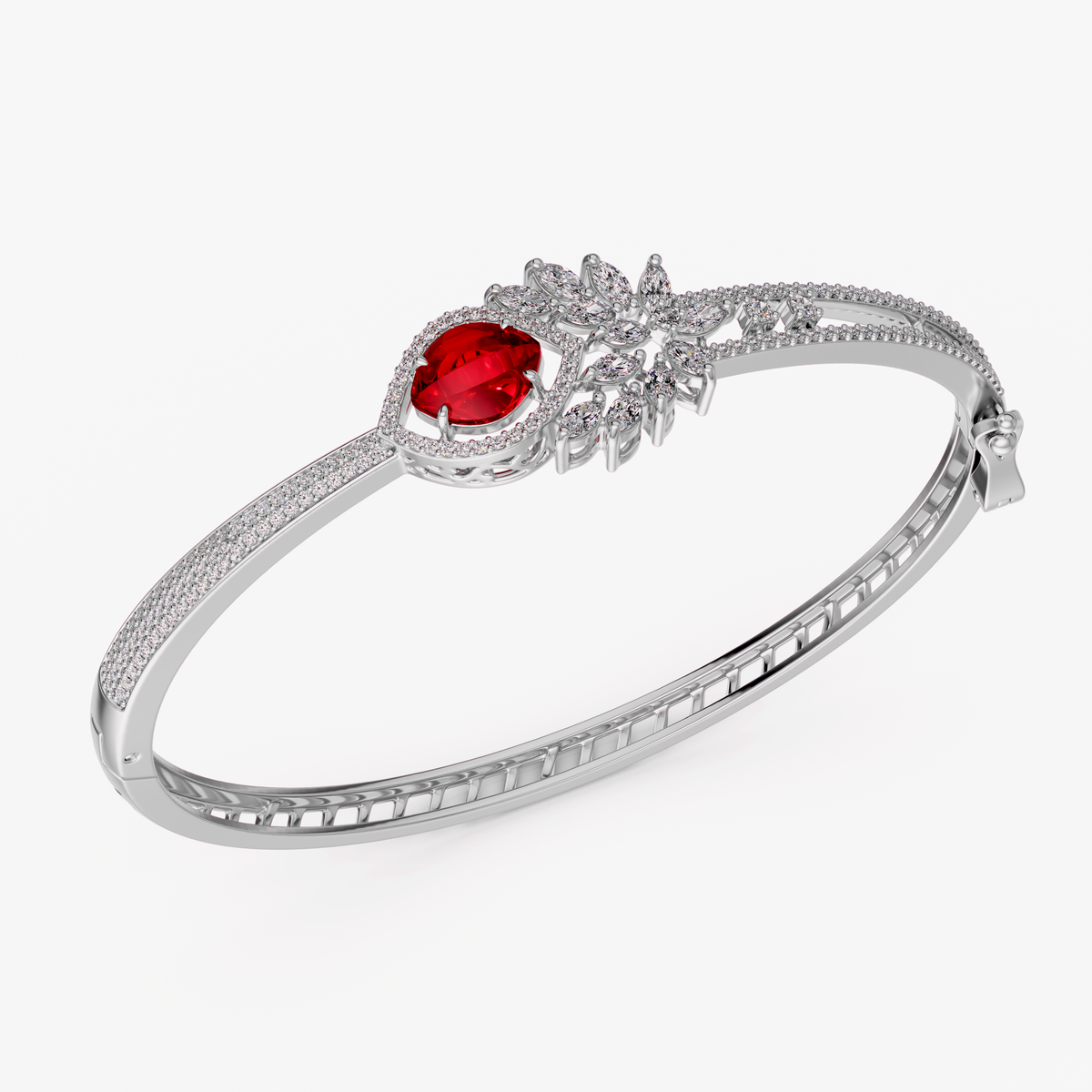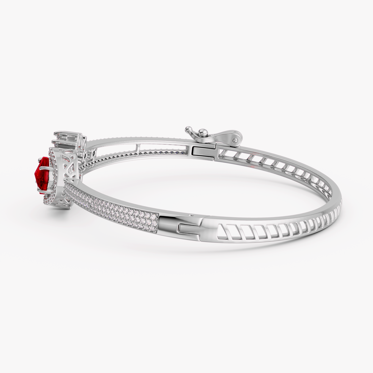 Captivating Centerpiece: The bangle features a vibrant, cushion-cut Red Cubic Zirconia (CZ) center stone that serves as a brilliant focal point.