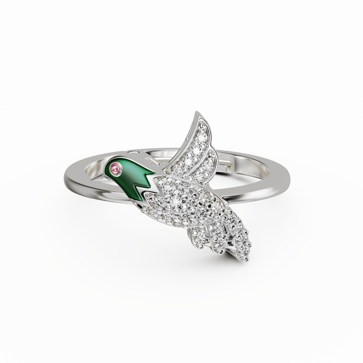 Vivid Green Enamel: The hummingbird's head is brought to life with a vibrant, polished Green Enamel finish, adding a rich splash of color and artistic detail.