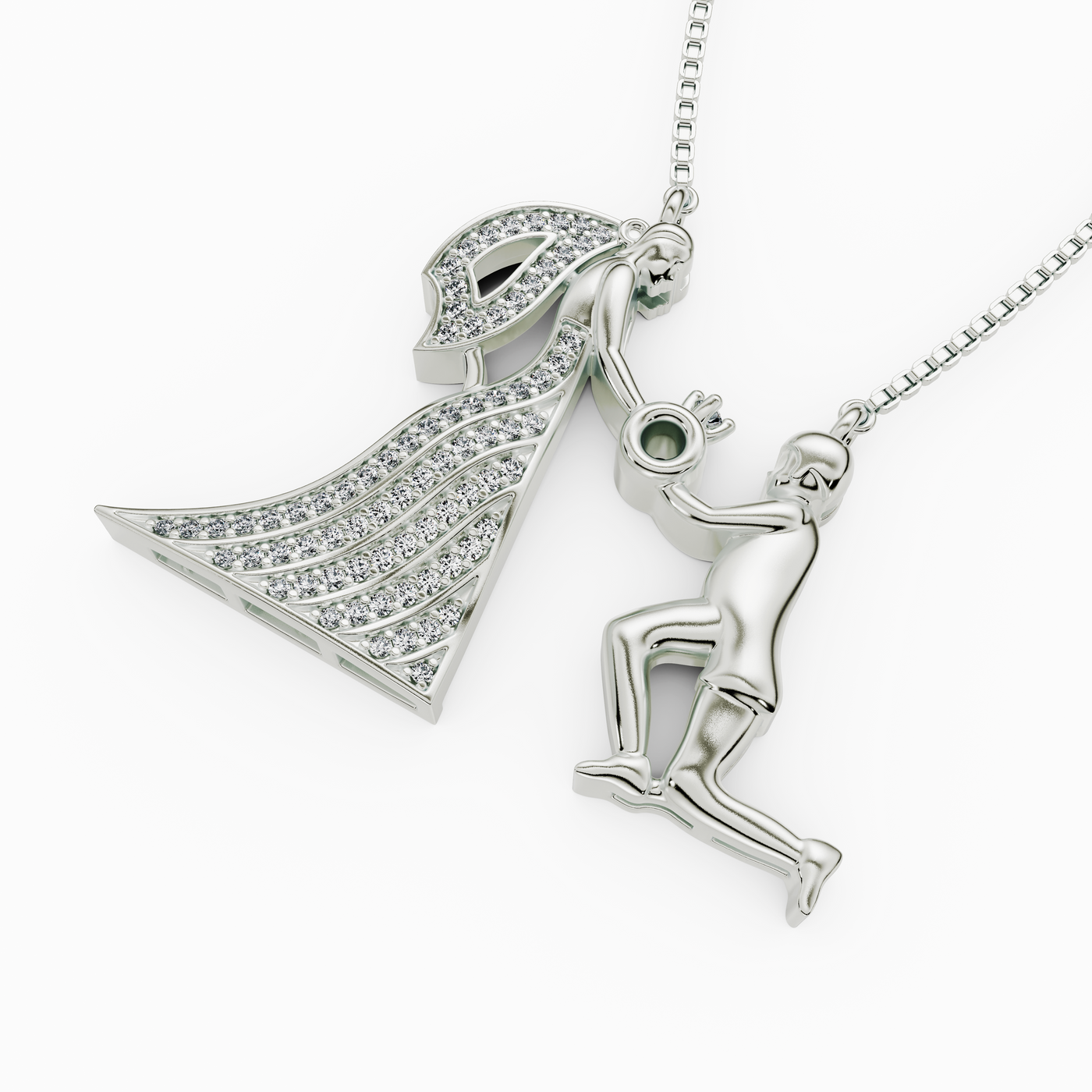 Capture the magic of a "happily ever after" with this exquisite Wedding Proposal Tanmaniya. This beautifully crafted piece depicts the most romantic moment of a lifetime—a groom on one knee offering a ring to his bride. Meticulously made from premium 925 Sterling Silver, this necklace serves as a timeless symbol of commitment and love.