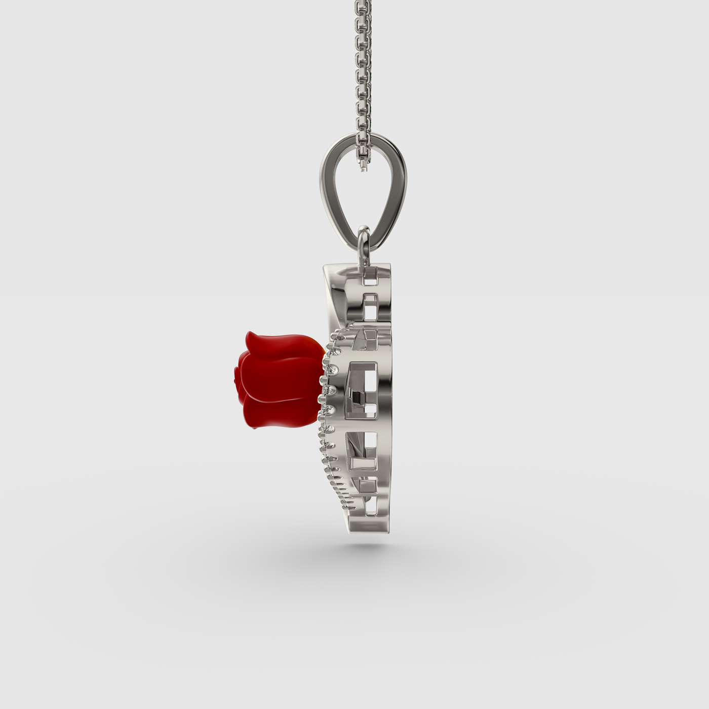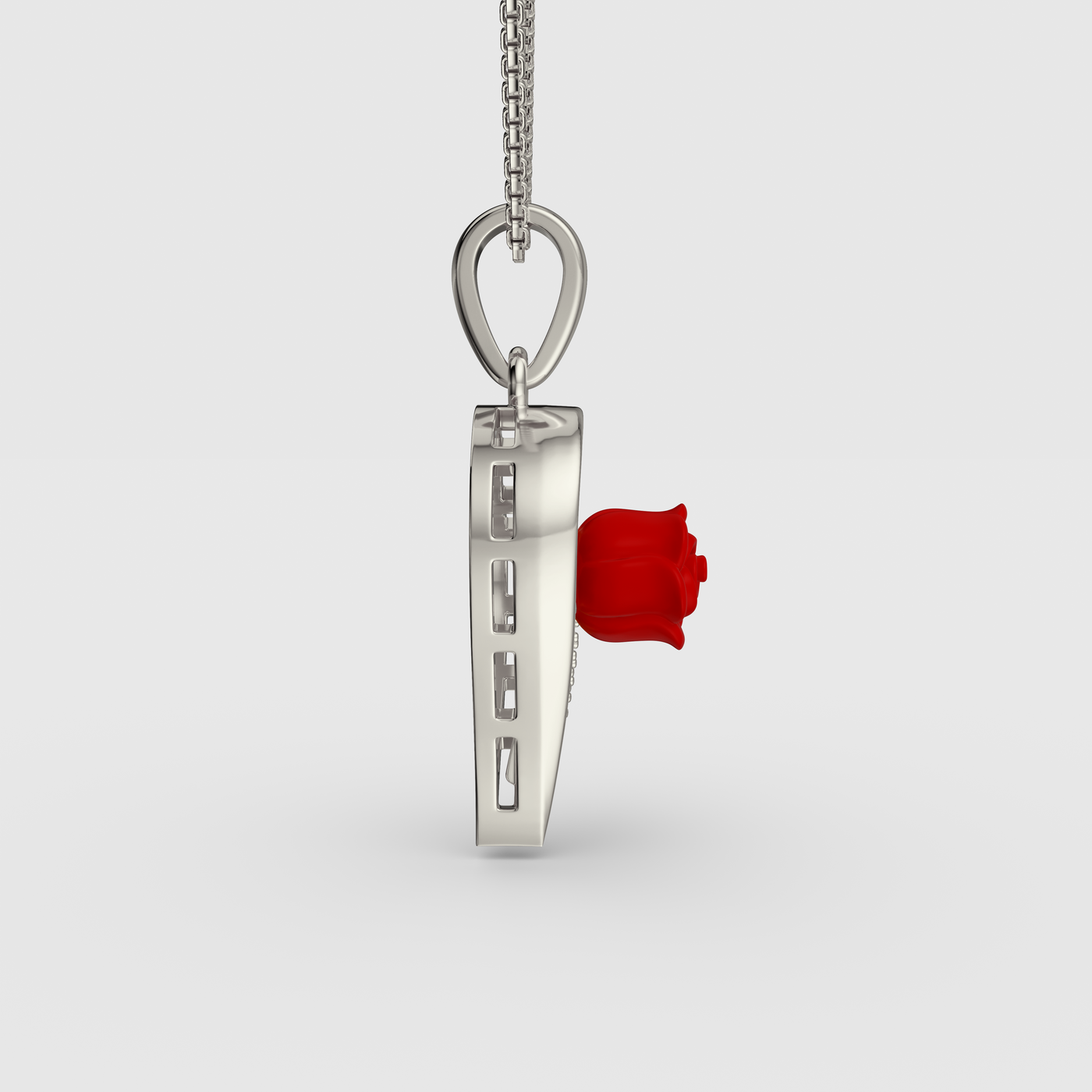 925 Sterling Silver & Enamel Rose Heart Pendant